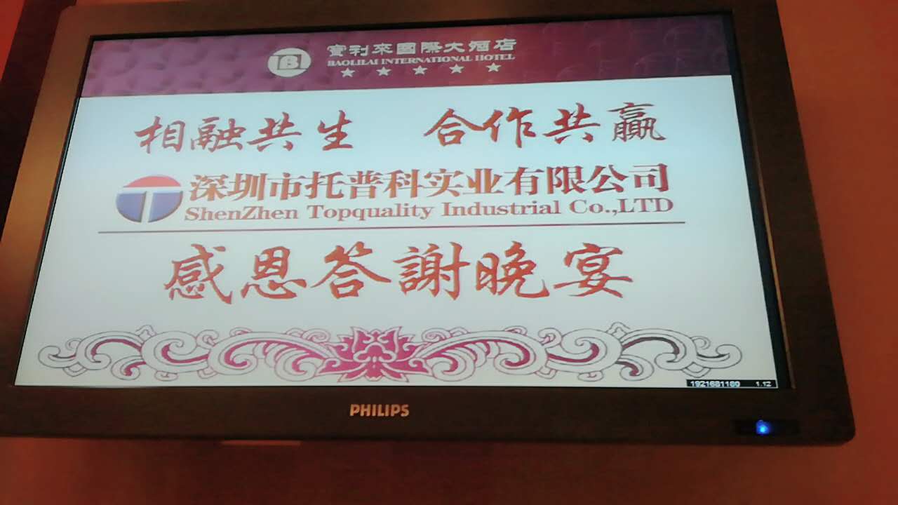 2017年6月2日,深圳市托普科實業有限公司感恩答謝晚宴在深圳福永寶利來國際大酒店拉開帷幕,“相融共生,合作共贏”是我們托普科這次感恩答謝晚宴的主題。答謝會除了表達對在場所有人員的感謝,更是打開大門,齊聚一堂,一起回顧了托普科十八年的歷程,感受品牌力量,分享品牌光芒,齊賞精彩節目表演,共襄盛舉。